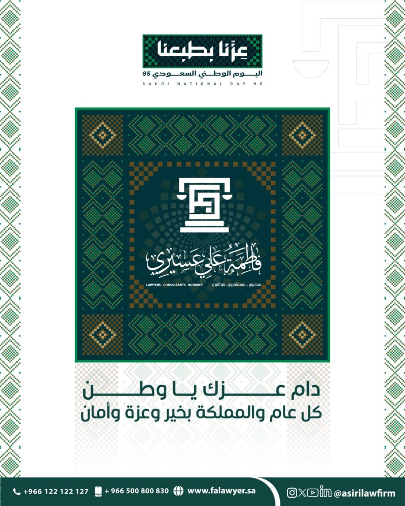شركة فاطمة علي عسيري للمحاماة والاستشارات القانونية تحتفل باليوم الوطني السعودي الـ95